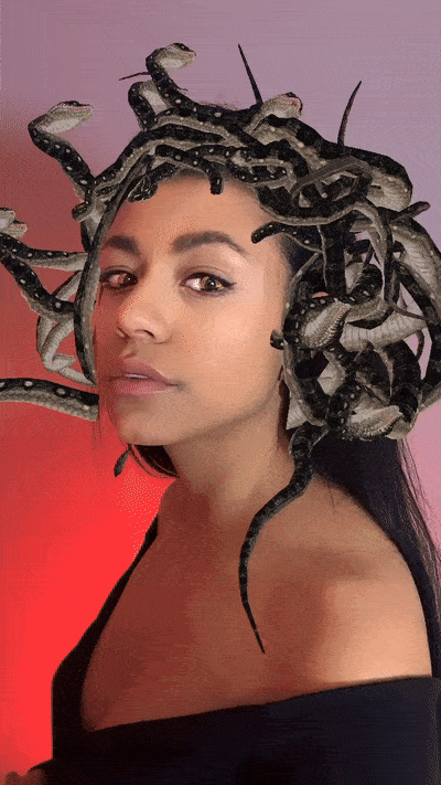"Medusa" is one of the first effects I made. I wanted to blend the famous myth with modern tech. It's a filter that transforms your hair into a writhing mass of snakes, mirroring the legendary Gorgon. When you open your mouth, the snakes react too, creating a dynamic and interactive visual. This project really opened my eyes to the potential of AR in putting users in the driver's seat, allowing them to control and interact with the digital environment in imaginative ways. It's been amazing to see the inventive and unexpected ways people engage with the effect.